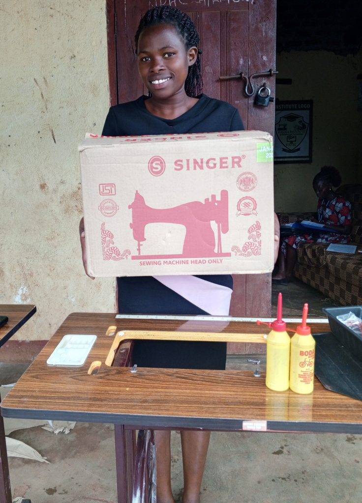 Musiiimenta Monica, One of the Beneficiaries holding her Tailoring machine